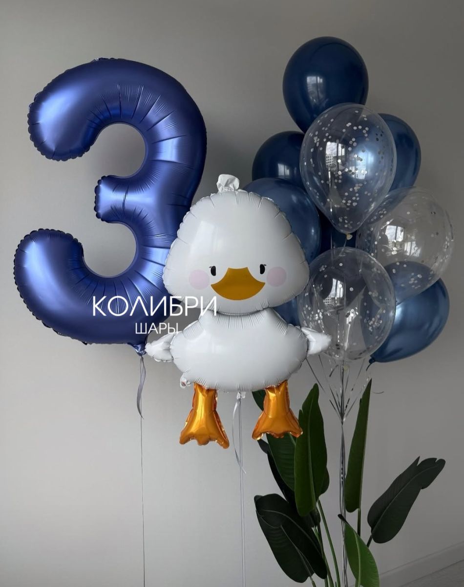 Набор шаров для мальчика с гусём и цифрой