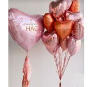 Огромное сердце с пышным хвостом, связка из 12 сердец, надпись Love(надувается воздухом)