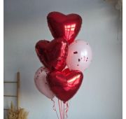 Большое сердце 90 см и связка из 7 фольгированных шаров с надписями