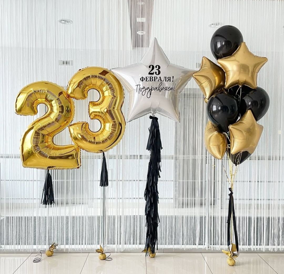 Набор шаров на 23 февраля с цифрами и звездой