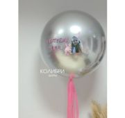 Большой прозрачный шар с надписью и зеленьб, 10 шаров на потолок