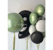 В набор входит: Два больших шара, фольгированный шар облако и 2 связки по 10 шаров, грузики пакеты