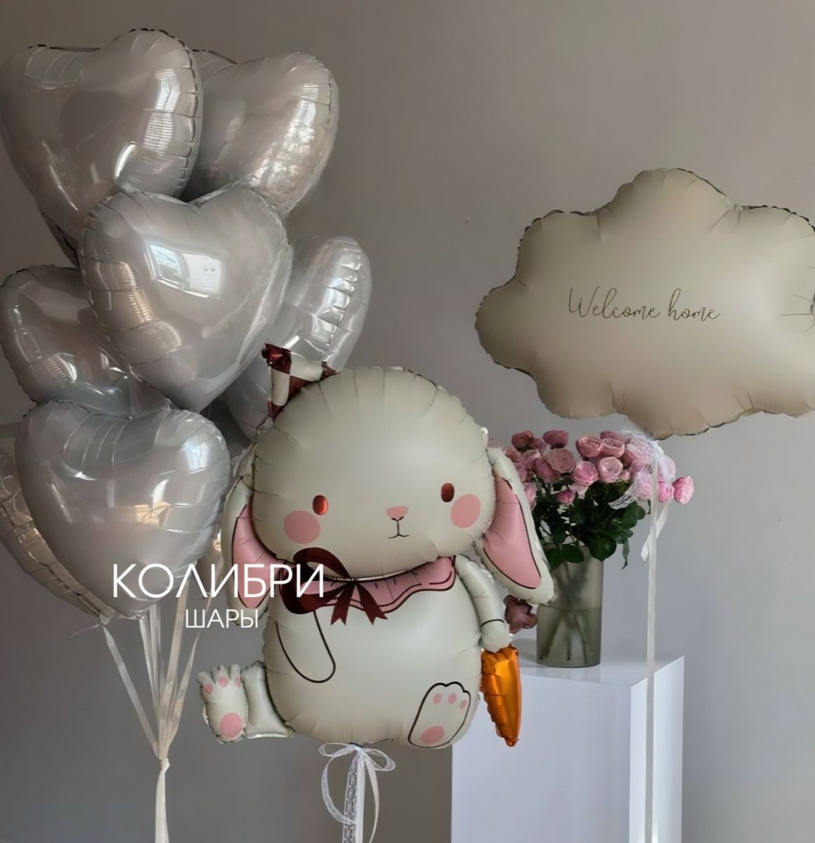 Фольгированный шар Зайка, связка из 9 сердец, фольгированный шар облако