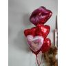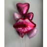 Связка фольгированный шар Поцелуй и 5 фольгированных сердец