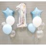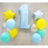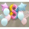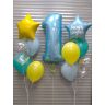 Цифра + 2 фольгированных шара + 8 любых латексных шаров