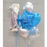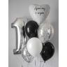 В набор входит: Цифра, звезда/сердце с надписью, 6 шаров, грузики, пакет