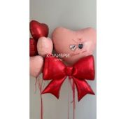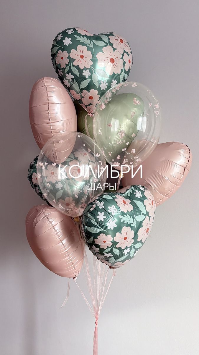 Связка из 10 шаров(8 фольгированных сердец и 2 шара с гортензией)